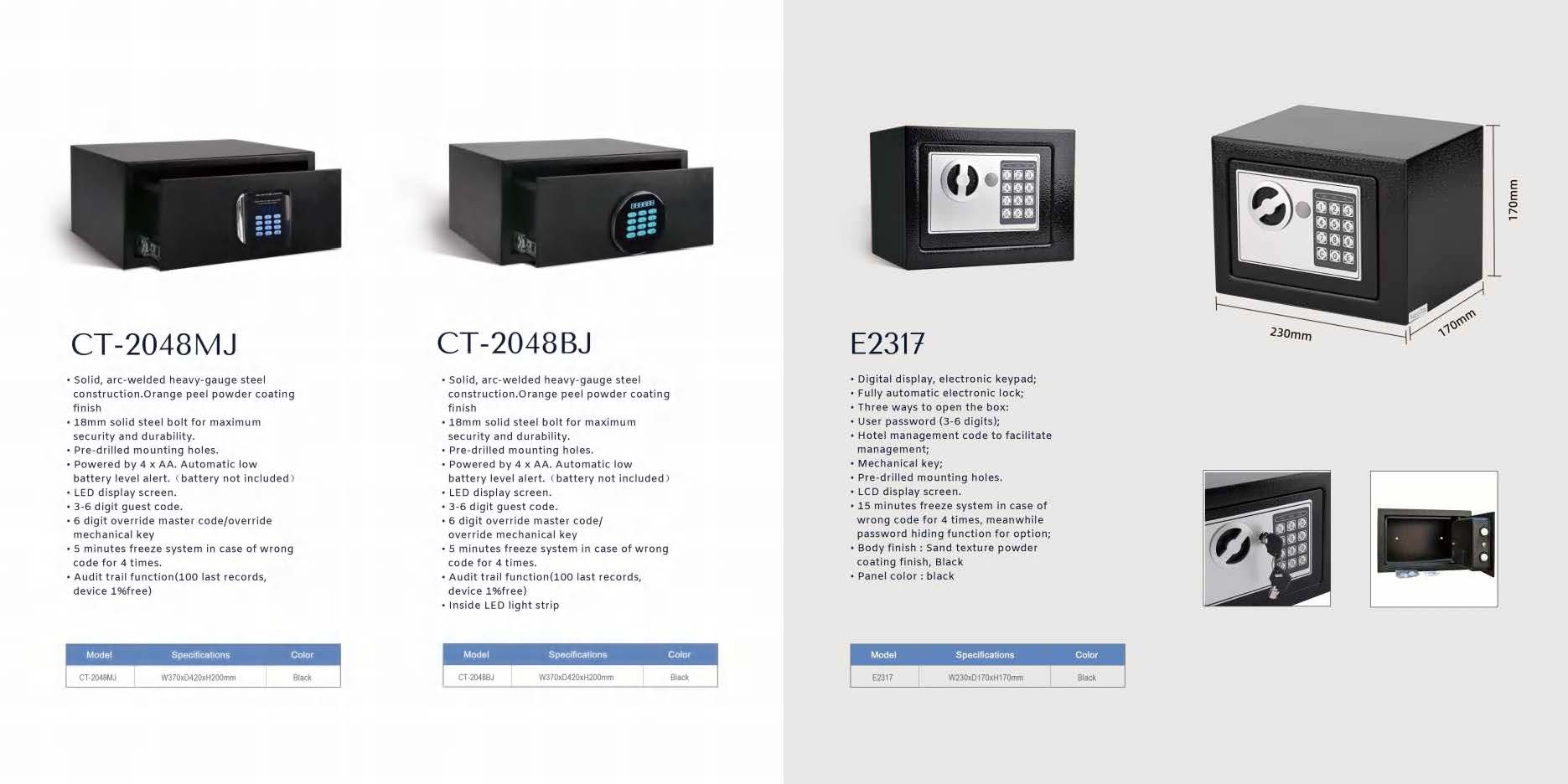 sefboksevi (modeli s karticom, kodnim ekranom, osjetljivim tipkama)